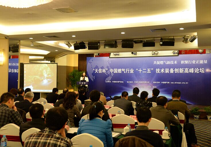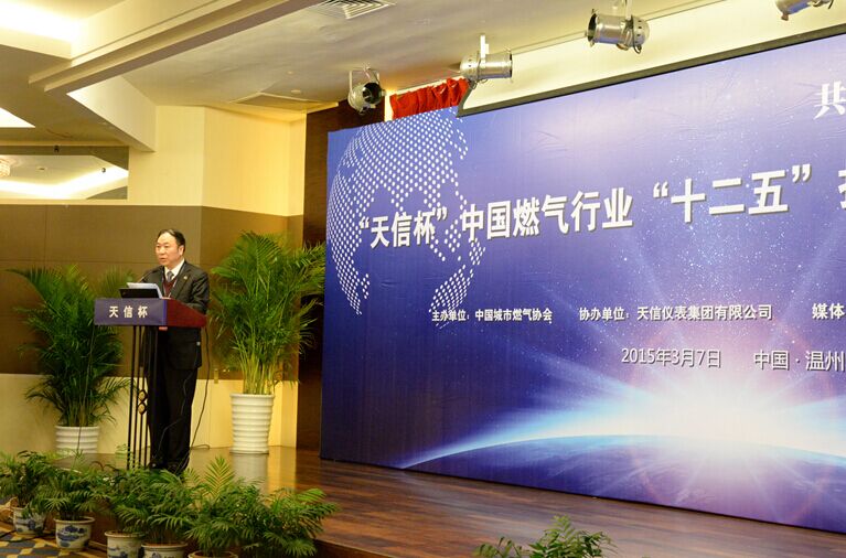 由中國(guó)城市燃?xì)鈪f(xié)會(huì)主辦、天信儀表集團(tuán)有限公司協(xié)辦的“天信杯”中國(guó)燃?xì)庑袠I(yè)“十二五”技術(shù)裝備創(chuàng)新高峰論壇和有獎(jiǎng)?wù)魑幕顒?dòng)發(fā)布會(huì),于2015年3月7日在溫州瑤溪大酒店隆重舉行。中國(guó)城市燃?xì)鈪f(xié)會(huì)理事長(zhǎng)王天錫、秘書長(zhǎng)遲國(guó)敬,中國(guó)儀器儀表行業(yè)協(xié)會(huì)專職副理事長(zhǎng)李躍光,浙江燃?xì)鈺?huì)秘書長(zhǎng)王莉莉,天信儀表集團(tuán)總裁范叔沙,以及來自業(yè)界的專家和領(lǐng)導(dǎo)100多人出席論壇。