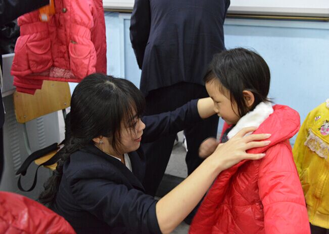 為了能讓每個孩子都能擁有禮物,愛心志愿者們讓孩子們排好隊,精心幫孩子們挑選適合的衣服。天信儀表集團黨委副書記鄭成平找到一件紅色羽絨服,在排在最前面的小女孩身上比試了一下:這件衣服很漂亮,我來幫你穿。小女孩乖巧的配合,并用稚嫩的童聲說了聲謝謝叔叔,穿好后一路蹦蹦跳跳的回到了自己位置上。志愿者陳書球是位20多歲的小伙子,還未婚,這是他第一次給小孩子穿衣服,難免有點笨手笨腳,但是穿得特別細(xì)心。志愿者黃君長相甜美,受到了孩子的喜愛,當(dāng)她拿起一件外套這件衣服有沒有哪位同學(xué)想試穿下?孩子們馬上爭相恐后地舉手:我要!我要!!我也要穿!。看著孩子們臉上一個個洋溢著開心的笑容,愛心志愿者也發(fā)自心底的感到快樂和開心。