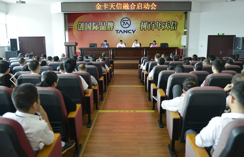 2016年10月25日上午,金卡天信融合啟動會在集團二樓大型會議室隆重舉行。金卡高科技股份有限公司董事長楊斌、副總裁楊翌、方國升、張華等,天信儀表集團總裁范叔沙及相關領導班子出席會議,集團中層干部、研發中心、制造中心等約60名員工參加了本次會議。會議由天信儀表集團副總裁仇梁主持。