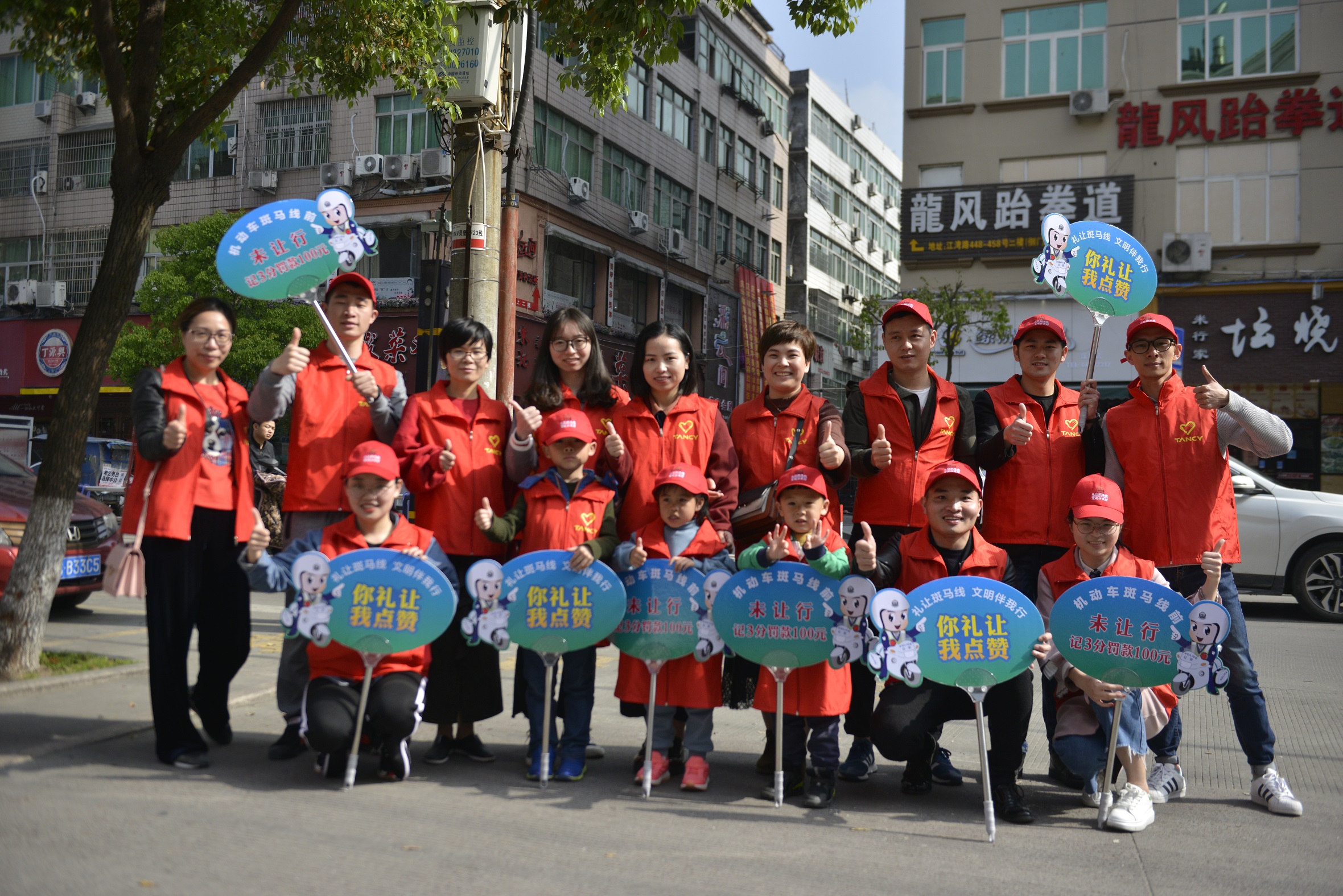 當天上午7點30分,由天信黨委書記黃曙華帶領的第一批志愿者每兩人一組,早早地就站在江灣路與建興路交叉路口旁,開始引導廣大機動車駕駛員在斑馬線處遇到行人過斑馬線時,減速慢行或停車避讓,禮讓行人優先通過,同時勸誡行人過馬路時要走斑馬線。